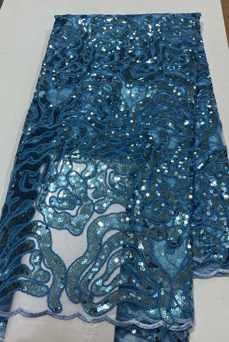 Light Blue Beaded George (3 Pieces) with Blouse Fabric