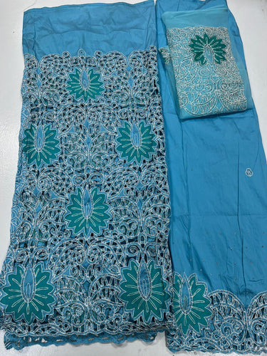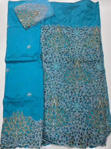 Light Blue Beaded George (3 Pieces) with Blouse Fabric