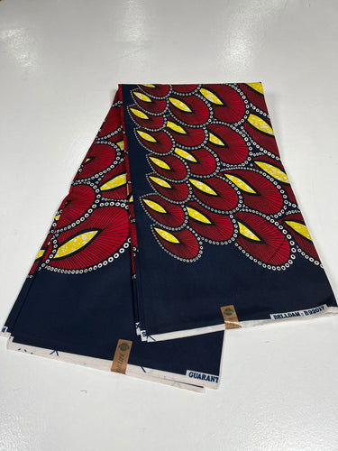 Navy Blue, Red and Yellow Ankara Print - 6 Yards
