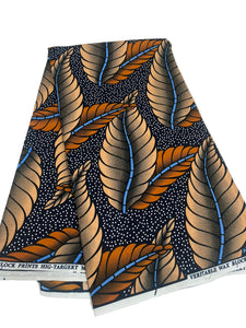 Brown, Burnt Orange and Blue Ankara Print - 6 Yards